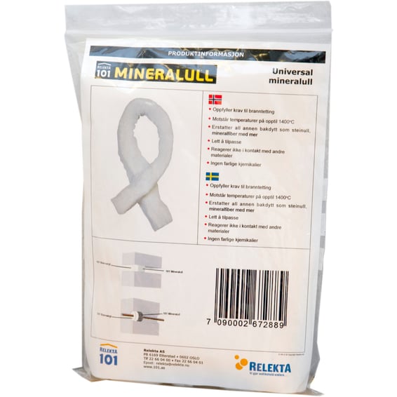 101 MINERALULL er konstruert for å oppfylle krav til branntetting når branntettingen blir gjort sammen med den Sintef-sertifiserte fugemassen 101 BRANNAKRYL. Dyttestrimmelen tåler ekstreme temperaturer på opptil 1400oC. Med sin lave vekt og gode termiske egenskaper er den ideell å bruke som bakdytt i branntettinger. Den er også mindre irriterende for huden enn for eksempel steinull. Størrelse: 25x48x600 mm. Farge: hvit.