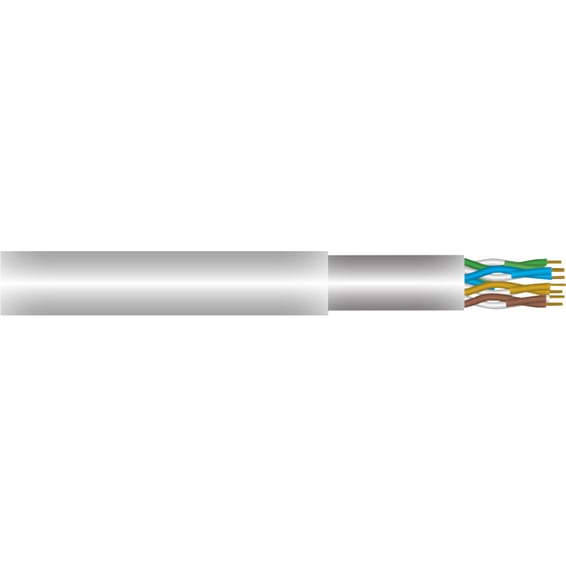 Uskjermet bredbåndskabel for ute- og innendørs bruk, kabelen har dobbel kappe hvor begge er UV-bestandig og halogenfri og flammehemmet.