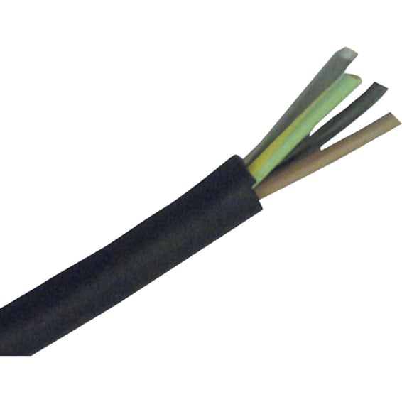 Gummikabel 4G1,5 mm². Værbestandig, oljebestandig gummikabel. Bruksområde for flyttbare apparater, maskiner og verktøy. Tillatt i alle slags rom og utendørs. Eske på 50 m.