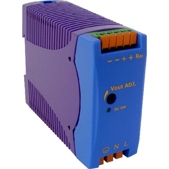 Kompakt switch mode strømforsyning for enkel montasje på DIN-skinne, CE-merket og ULgodkjent. DRA serien er basert på switch- mode teknikk som sørger for særdeles kompakt størrelse, høy virkningsgrad og lav rippel.