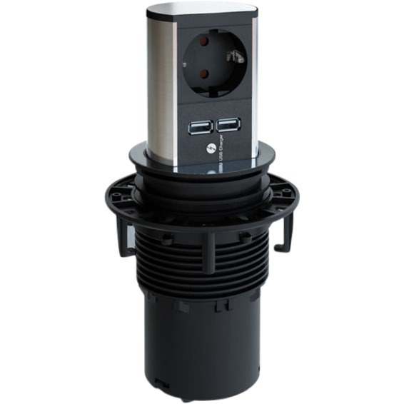Elevator 1 stikkontakt og 2xUSB lader Børstet stål