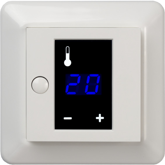 Digital termostat fra Elko med touchskjerm. Kan regulere gulv- og romsensor, samt frostsikring og begrensning av gulvsensor på 27 grader. Termostaten er utstyrt med ur-inngang for enkel tilkobling og styring av nattsenk.