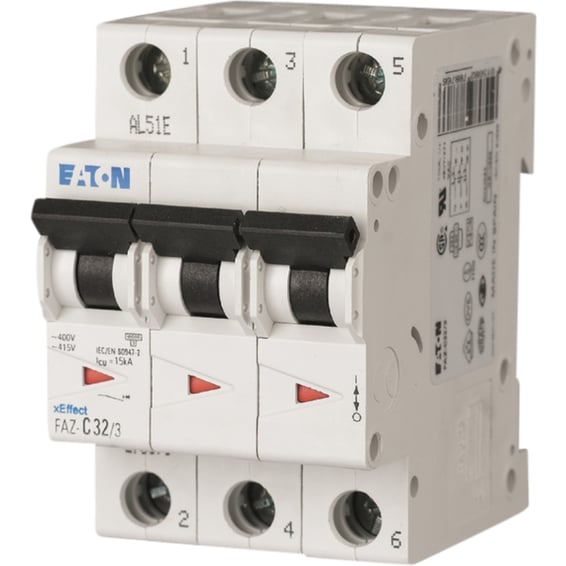 FAZ er Eatons elementautomat for alle applikasjoner. Passer både til bolig og næringsbygg. FAZT er spesielt tilpasset installasjoner med store kortslutningsytelser. FAZ-DC er kun for likestrøm. Hjelpekontakter, shunt-trip og underspenningsspole finnes som tilbehør. Se fanen ETIM for tekniske data eller link til FDV dokumentasjon. Tiltrekningsmoment 2,4 Nm.