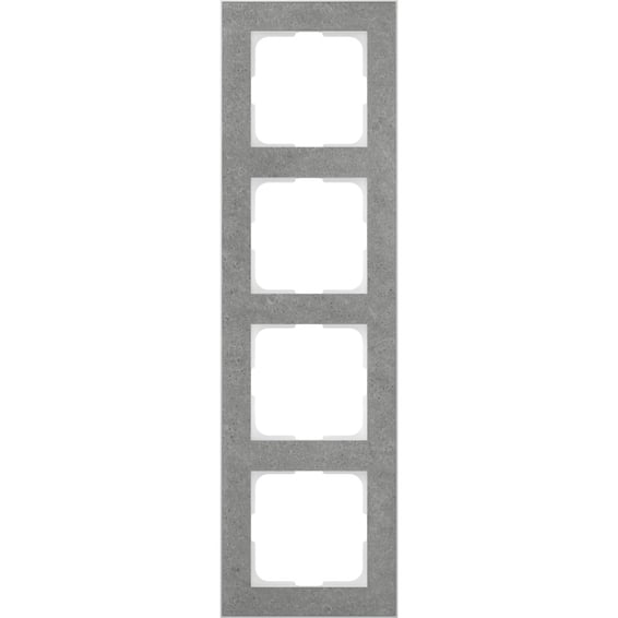 ELKO Plus Layer kombinasjonsplate 4 hull med betong laminat og polarhvit bakramme. For bruk i innfelt installasjon, eller i kombinasjon med ELKO Plus påveggskappe. Ved montering av bryter må festeramme L339, el.nr. 14 107 70 benyttes.