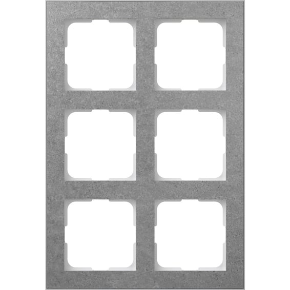 ELKO Plus Layer multiramme 2x3 hull med betonglaminat og polarhvit bakramme. For stikkontakt, bryter eller svakstrømsutstyr.
