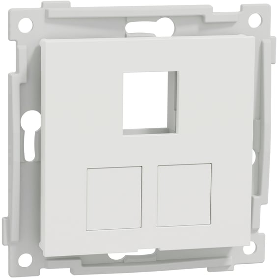 ELKO Sentralplate rett, for 3x Keystone, leveres med 2 blindplugger. Konnektorene sneppes direkte inn i festerammen, og sentralplaten sneppes på plass. Monteres i 1- til 5-hulls ramme, innfelt eller i høy påveggskappe eller hjørnekappe. Mål på produktet er (B) 74,2 mm x (H) 74,2 mm x (D) 20,3 mm. Kompletteres med design ramme. Kapslingsklasse IP20. Farge: renhvit (RAL 9003).