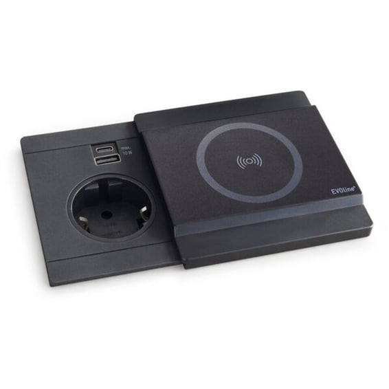 EVOline Circle80 Slide Qi 1x stikk USB-A/C Sort