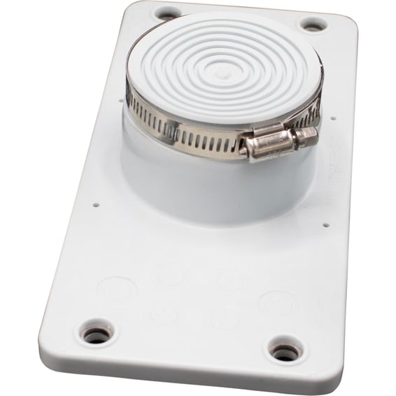 Inkludert slangeklemme i syrefast stål strammes til for å tette rundt kabel.