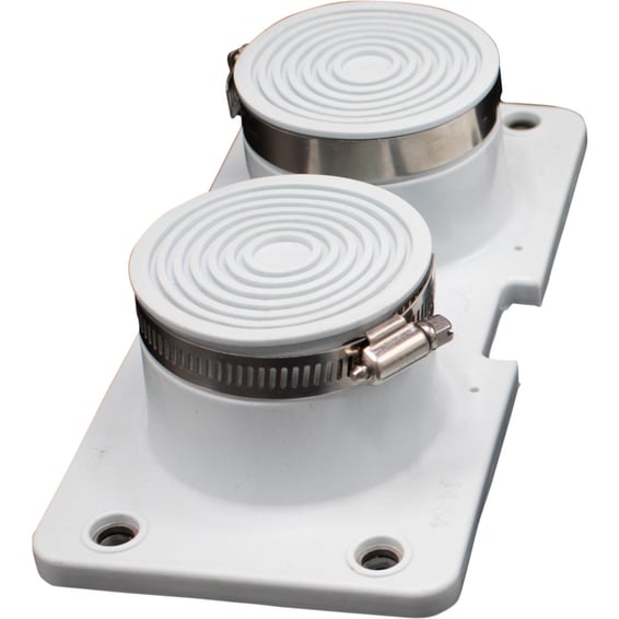 Inkludert slangeklemme i syrefast stål strammes til for å tette rundt kabel.