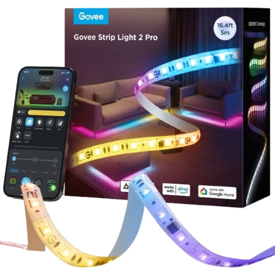 Govee LED Strip Light 2 Pro er en avansert smart LED-lysstripe utviklet for deg som ønsker maksimal lysstyrke, presise farger og sømløs integrasjon i moderne smarthjem. Den benytter Govees RGBICWW-teknologi med individuell styring av LED-segmenter, som gir dynamiske fargeoverganger og naturlig hvitt lys i én og samme stripe. Med støtte for Matter, Wi-Fi og Bluetooth fungerer den like godt til funksjonell belysning som til stemnings- og underholdningslys.