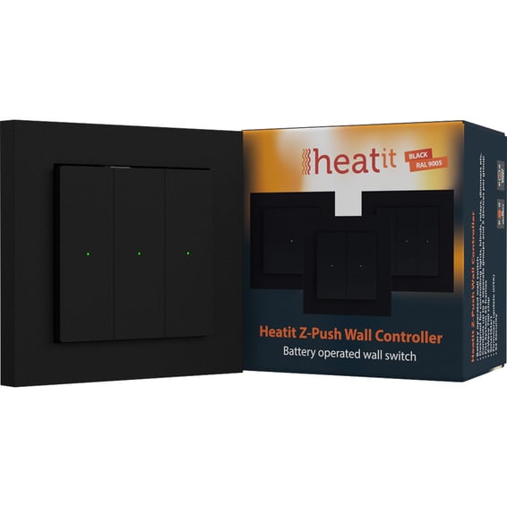 Bryteren kan settes opp for å kontrollere scenarier eller virke sammen med andre Z-Wave-produkter. Hver vippebryter har en LED med to farger for å indikere handlinger. Heatit Z-Push Wall Controller leveres med alle tre vippebryterfronter.Heatit Z-Push Wall Controller har SmartStart. Denne funksjonen lar brukeren inkludere alle enheter med SmartStart ved å skanne QR-kodene på enhetene. Ved oppstart inkluderes alle enhetene automatisk i gatewayen (krever SmartStart-kompatibilitet).