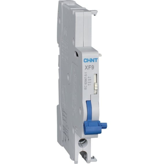 Hjelpekontakt. Monteres på venstre side av vernet. Indikerer posisjonen til vippen på vernet. Potensialfri kontakt med klemmesett 11-12-14. Passer til elementautomat NB1, jordfeilbryter NB1L og jordfeilautomat NB310L. Største tverrsnitt 2,5mm2. Moment 0,8Nm.