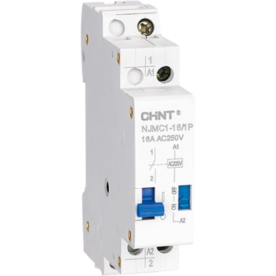Mekanisk bistabilt impulsrele for DIN-skinne montering, 16A. Kontaktsett beregnet for 16A AC-1 laster. Se produktblad for belastningstabell