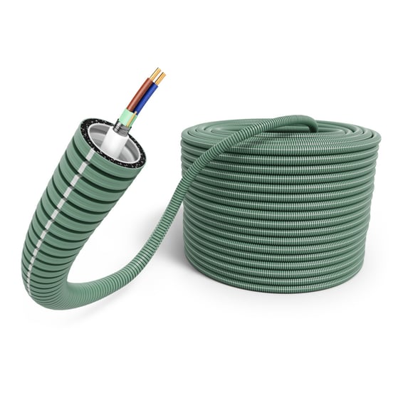 Miljøvennlig ferdigtrukket (PR) i halogenfritt ipipegrønt korrugert installasjonsrør laget av resirkulert polypropylen i nanofriksjonsdesign. Produktet er utviklet over mange år med mål om minimal miljøpåvirkning og maksimal funksjonalitet. Produktet er designet i tre lag for å oppnå maksimal nytte (ytre fargelag, slitesterkt mellomlag og et indre friksjonsfritt lag).