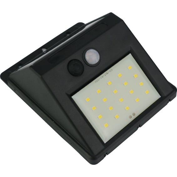Praktisk solcelledrevet vegglys med sensor. Lampen bruker bruker energien fra solen til å lyse opp hus og hage på en enkel, effektiv og bærekraftig måte. Sensoren registrerer bevegelse innenfor en viss rekkevidde.
