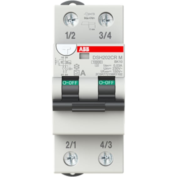 Jordfeilautomat 2pol DSH202CR M Bk10A/30mA ABB
