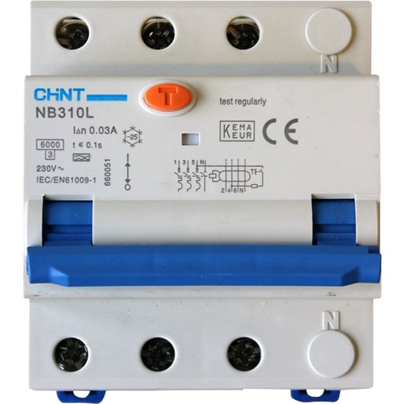 JORDFEILAUTOMAT 3POL 20A B-KAR 30 mA 6kA 4mod IT/TT 230V