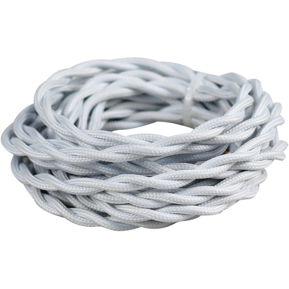 Hvit lampeledning fra Namron i vridd tekstil med en lengde på 3 meter.