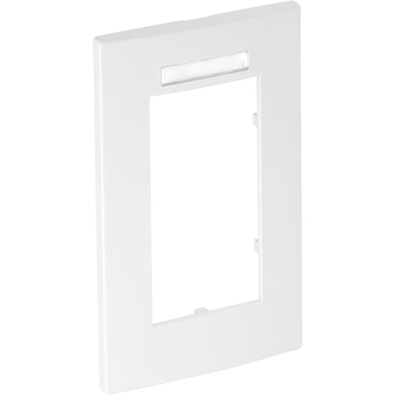 Frontfestet dekkramme for Modul 45 produkter, for dobbel stikk, med merkevindu. Materiale: PC-Polycarbonate. Farge renhvit RAL9010. Benyttes for vertikal installasjon. For dobbel installasjonsboks type 71 GD13 og dobbel monteringsholder type 71MT2 45Vi er etter Forskrift om elektrisk utstyr § 21 pliktig til å informere våre forbrukere at installasjonsmateriell ment for å kunne inngå i et fast elektrisk anlegg kan kun installeres av en registrert installasjonsvirksomhet. Unntatt er elektrisk materiell som utelukkende er ment for bruk i faste teleinstallasjoner, og elektrisk materiell som forbruker selv lovlig kan installere. Ønsker du mer informasjon, se ”Hva kan du gjøre selv?”, hvor du også finner ekstern lenke til dsb (Direktoratet for samfunnssikkerhet og beredskap) for “Hva kan privatpersoner gjøre selv på det elektriske anlegget?”