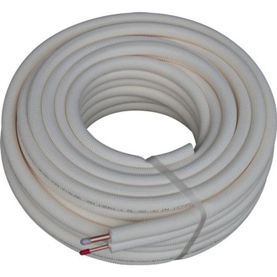 Kobberrør Preisolert 1/4x1/2 parvise rør i kveil 20m Hvit