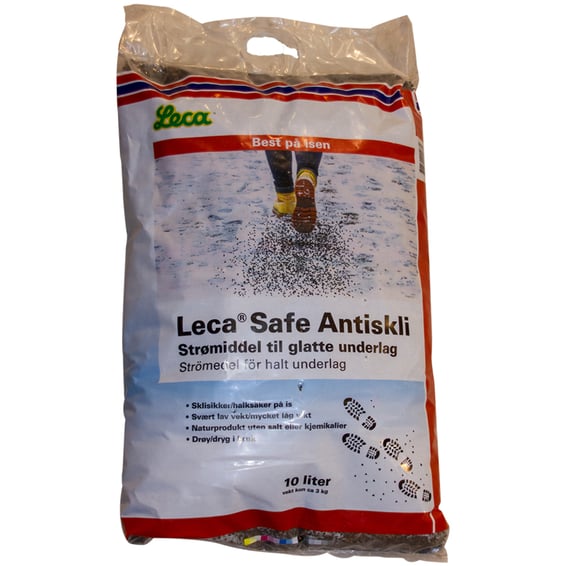 Leca Safe Antiskli er best til glatte overflater. Den er miljøvennlig, er et enkel og effektiv strømiddel til glatte gangveier, trapper, oppkjørsel o.l. Produktet er av knust lettklinker i str 1,5-5 mm, et naturprodukt som kan gjenbrukes som jordforbedring.Teknisk beskrivelse
