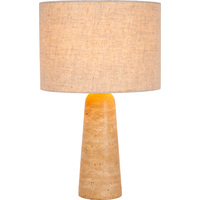 Med sin travertinbase og tradisjonelle lin-skjerm utstråler denne lampen tidløs eleganse.