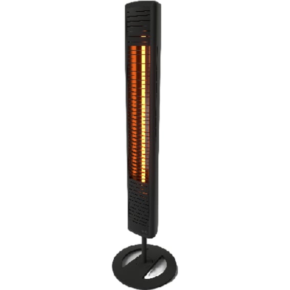 Terrassevarmeren er enkel å flytte rundt etter behov og styres enkelt med seks stegs fjernkontroll. Slank og elegant design med en lekker sort farge som glir naturlig inn i enhver møblert uteplass.