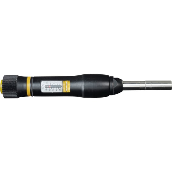 For momenter fra 0,4 til 2 Nm. Automatisk hurtigløser ved tiltrekking av skruer: Tydelig hørbart og følbart klikksignal når det valgte dreiemoment er nådd. Forhåndsinnstilling av dreiemoment ved å rotere den rillede ringen på håndtaket (låsbar9. Synlig skala i vinduet. 50mm langt skaft med magnetisk holder for 1/4" (6,3mm) standardbits. Inkluderer adapter med 1/4" sekskantnøkkel til 1/4" firkant for piper.