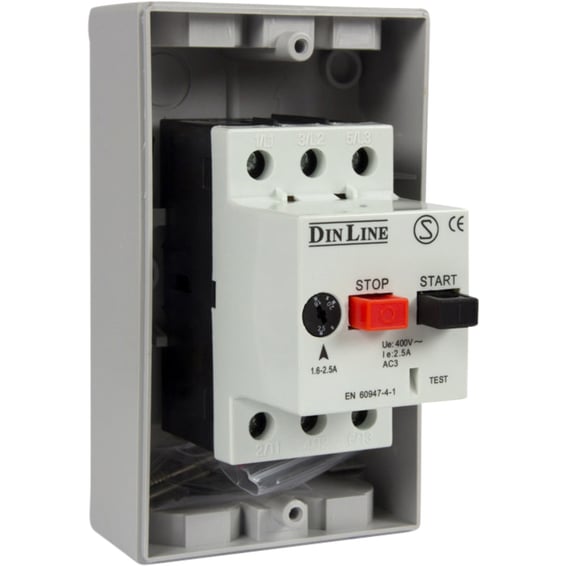 Bryteren har fasebruddsbeskyttelse i.h.h.t. EN 60947-4-7, IEC 947-4-1 og VDE 0660/102. Anvendes som beskyttelse for en- eller trefasemotorer. Kan kompletteres med hjelpekontakt, underspenningsutløser og kapsling. Temperaturområde: -20°C - +50°C Termisk og elektromagnetisk. Innstillingsområde: 6,3-10,0A. IP55. BxHxD: 80x135x96 mm.