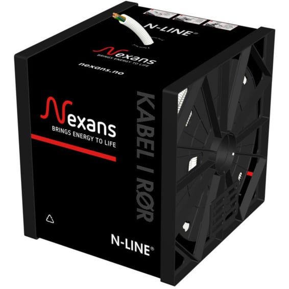 N-LINE FX leveres ferdigtrukket i rør med en lenge på 100 meter og en rørdiameter på 16 mm. Tvillingledningen skal alltid ligge i rør når den anvendes i 230V downlightanlegg, frem til egnet downlightkasse.Funksjonalitet
