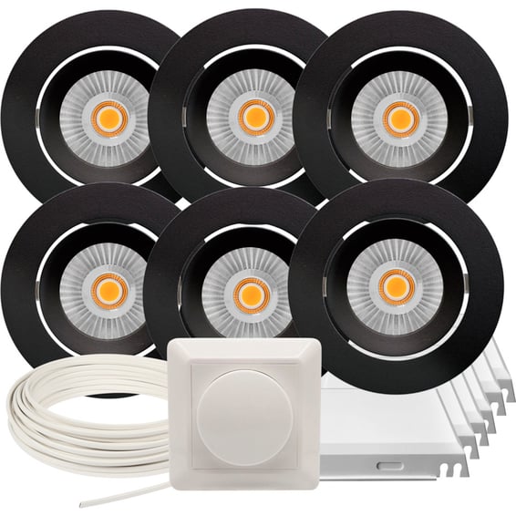 Komplett Alfa Reflektor LED Downlightpakke med det du trenger for å montere 6 stk. Alfa Reflektor LED downlights.