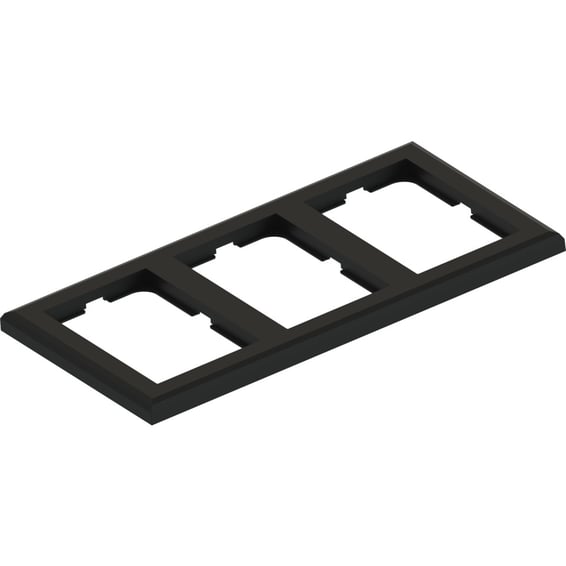 3-hulls ramme/kombinasjonsplate fra designserien Namron Edge. Matt sort utførelse. Produsert i halogenfritt materiale, gjennomfarget for å unngå riper og skraper.