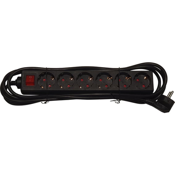 Namron Skjøteledning 6-veis Jord Bryter 3M sort