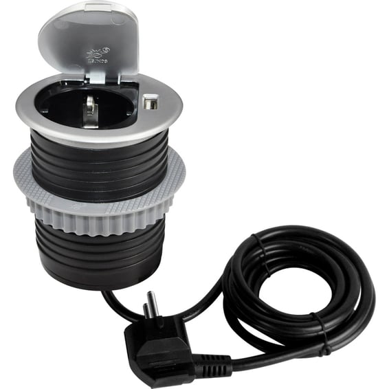 Denne nedfellbare stikkontakten har et enkelt stilrent design som passer inn på et hvert kjøkken eller kontor. Flere kontorpulter leveres med hull på 60mm for kabelgjennomføring, så her passer denne nedfellbare stikkontakten perfekt.Beregnet for arbeidsrom, stue, kjøkken og soverom.