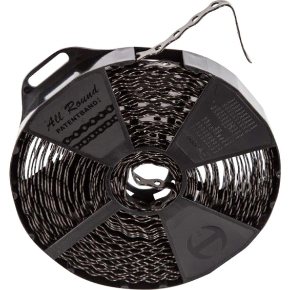 Båndet har en dimensjon på 13 x 1,4 mm, hull Ø 4,3 mm og leveres i rull på 10 meter. Sort utførelse gir en diskret installasjon.