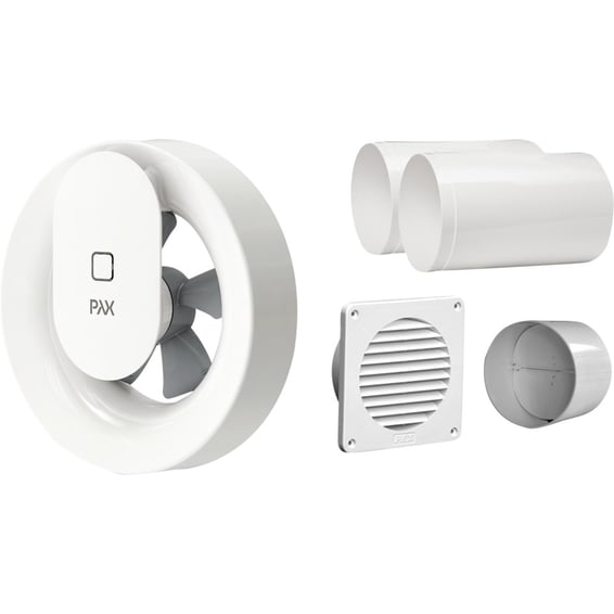 Helautomatisk våtroms vifte for montering i kanal med eller uten naturlig trekk. Forhåndsinstallerte moduser med helautomatiske tre-trinns stillinger: Lav hastighet (grunnventilasjon). Mellom høy hastighet (aktivert via lyssensor). Høy hastighet (aktivert via fuktighetsføleren). Viften er innstilt på forhånd til å kjøre kontinuerlig på lav hastighet og har fukt, lys og tilstedeværelse sensor aktivert. Med Pax appen kan man programmere ytterlige profiler og selv velge hvordan viften skal arbeide.