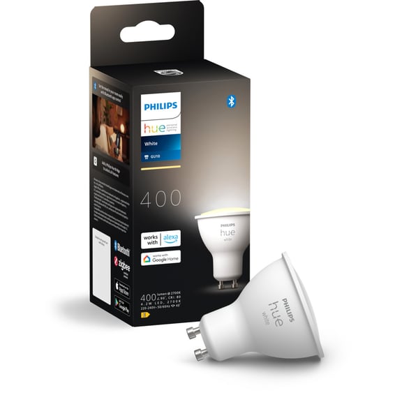 Philips Hue GU10-lyskilden har en effekt på 4,2 watt og produserer 400 lumen med en fargetemperatur på 2700K, som gir et mykt hvitt lys. Pæren har en levetid på imponerende 25 000 timer, noe som sikrer langvarig ytelse uten behov for hyppige utskiftninger. Den er kompatibel med både Bluetooth og Zigbee-kommunikasjonsprotokoller, og kan styres gjennom Philips Hue-appen eller via stemmestyring når den er koblet til en kompatibel enhet som Amazon Alexa eller Google Assistant. Pæren har en GU10-sokkel.