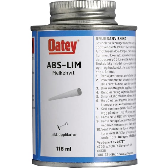 ABS sementlim for skjøting av sentralstøvsugerrør i ABS, eller andre komponenter i ABS. Limet påføres røret med den medfølgende kosten før røret kobles sammen med skjøtedel. 118 ml.