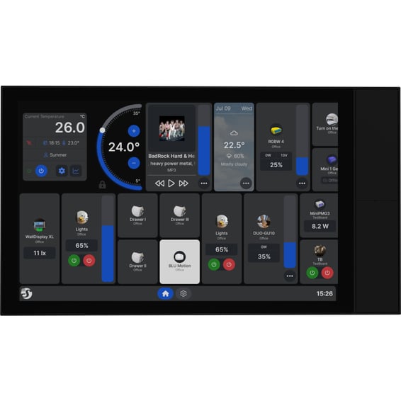 Enheten har full integrasjon med Home Assistant, slik at du kan vise dine Home Assistant-dashboards direkte på skjermen – helt uten behov for ekstra firmware.