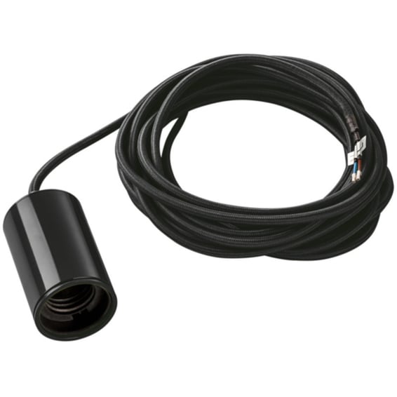 FITU 1 er en innendørs pendellampe med med åpen kabelende og sokkel i sort utførelse. Lampen har en lengde på 5 meter.