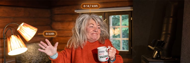 I kampanjen vår møter du svigermor Kari Wenche Hanssen, også kjent som kWh, som har blitt igjen alene på hytta. Varmen står på, lyset er tent i alle rom, kaffetrakteren holder seg varm og strømmen går for fullt. helt uten at noen har fått det med seg. Kari Wenche er svigermoren som aldri skrur av, og som alltid mener det er litt bedre med litt ekstra varme og litt mer lys.