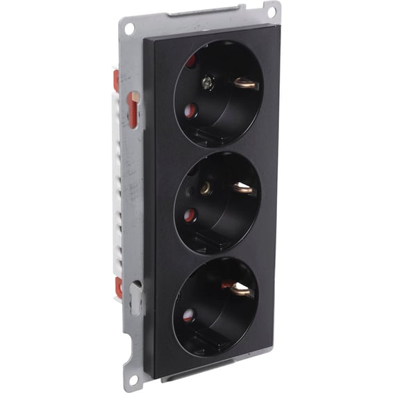 Stikkontakt 3-veis innfelt med sentralplate S1093 PT Sort