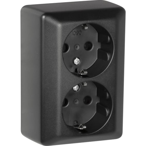 Stikkontakt Dobbel påvegg jord RS1090 PT Sort Elko