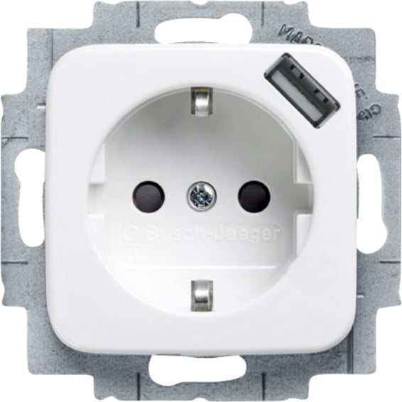Stikkontakt enkel m/USB og jord u/ramme Hvit Jussi ABB