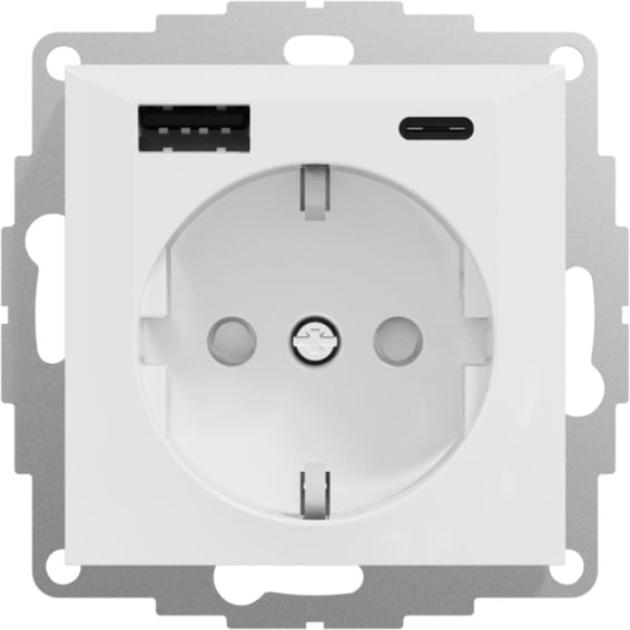 Stikkontakt enkel USB A+C 3A I RS Renhvit Elko